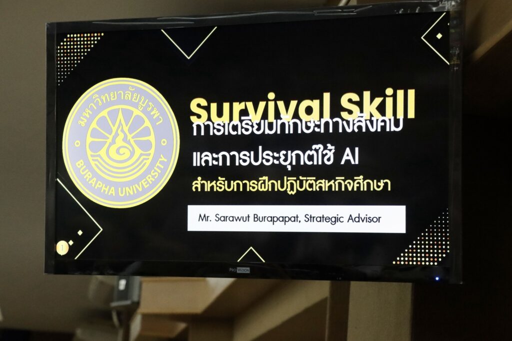 วันที่ 5 กุมภาพันธ์ พ.ศ. 2569 คณะมนุษยศาสตร์และสังคมศาสตร์ มหาวิทยาลัยบูรพา จัดอบรมในหัวข้อ “การเตรียมทักษะทางสังคมและการนำปัญญาประดิษฐ์ไปใช้สำหรับการฝึกปฏิบัติสหกิจศึกษาและการศึกษาเชิงบูรณาการกับการทำงาน” รอบ 1 ให้กับนิสิตชั้นปีที่ 1 โดยได้รับเกียรติจาก คุณสราวุธ บูรพาพัธ ที่ปรึกษาด้านการสื่อสารเชิงกลยุทธ์ บริษัท มาร์เก็ต-คอมส์ จำกัด เป็นวิทยากร
