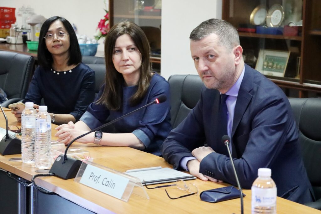 วันที่ 11 กุมภาพันธ์ พ.ศ. 2569 ตัวแทนผู้บริหาร คณาจารย์ และบุคลากร คณะมนุษยศาสตร์และสังคมศาสตร์ มหาวิทยาลัยบูรพา ให้การต้อนรับ Prof. Calin Hintea and Prof. Cristina Hintea จาก Babeș-Bolyai University ประเทศโรมาเนีย ในโอกาสเดินทางมาเยี่ยมชมคณะมนุษยศาสตร์และสังคมศาสตร์ เพื่อหารือแนวทางในการทำกิจกรรมทางวิชาการร่วมกันตามที่ได้มีการลงนาม MOU และได้มีการแนะนำ ผศ. ดร. กังวาฬ ฟองแก้ว อาจารย์ที่ได้รับทุนโครงการ Erasmus+ Mobility ซึ่งจะเดินทางไปร่วมโครงการดังกล่าวที่เมือง Cluj-Napoca ประเทศโรมาเนียในเดือนพฤษภาคมที่จะถึงนี้
