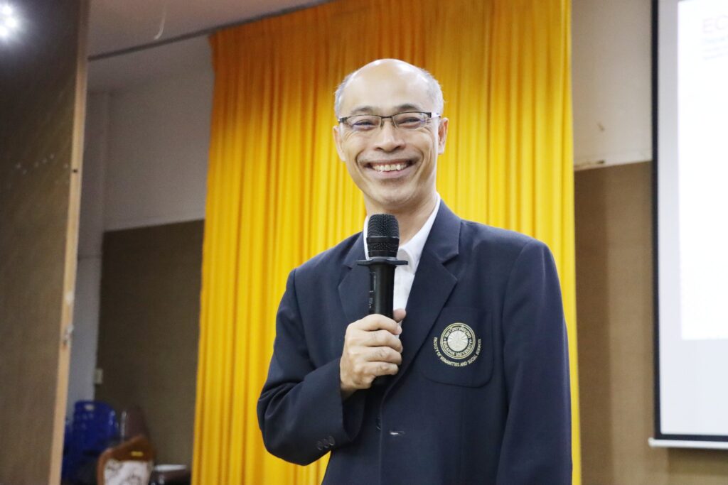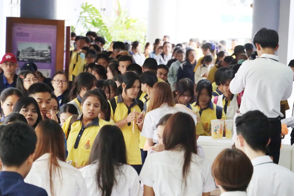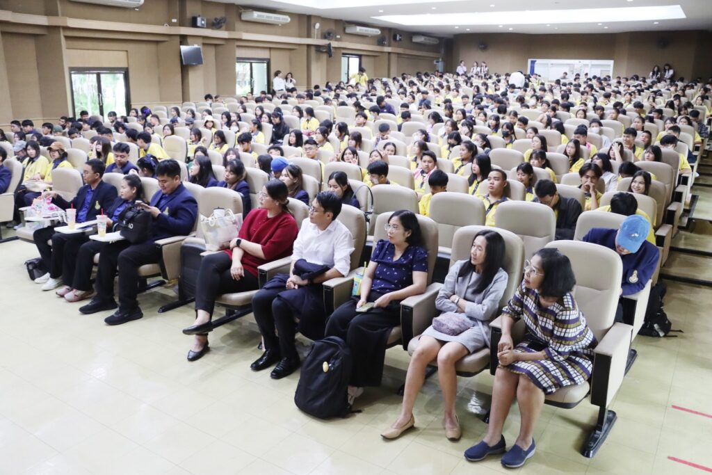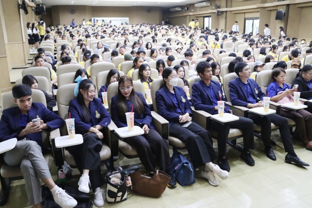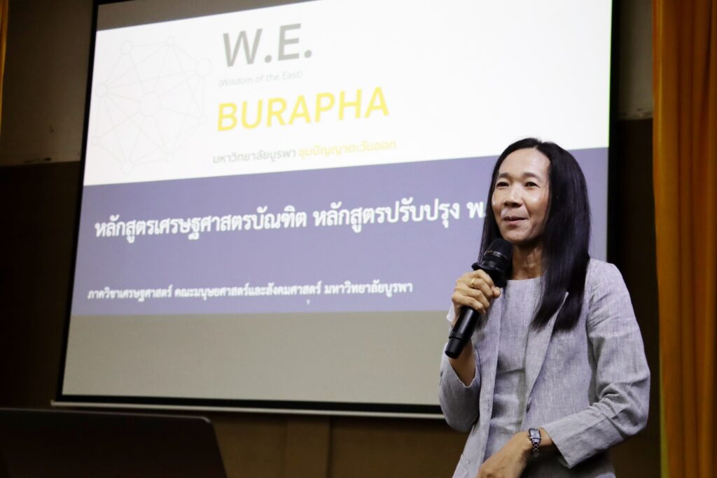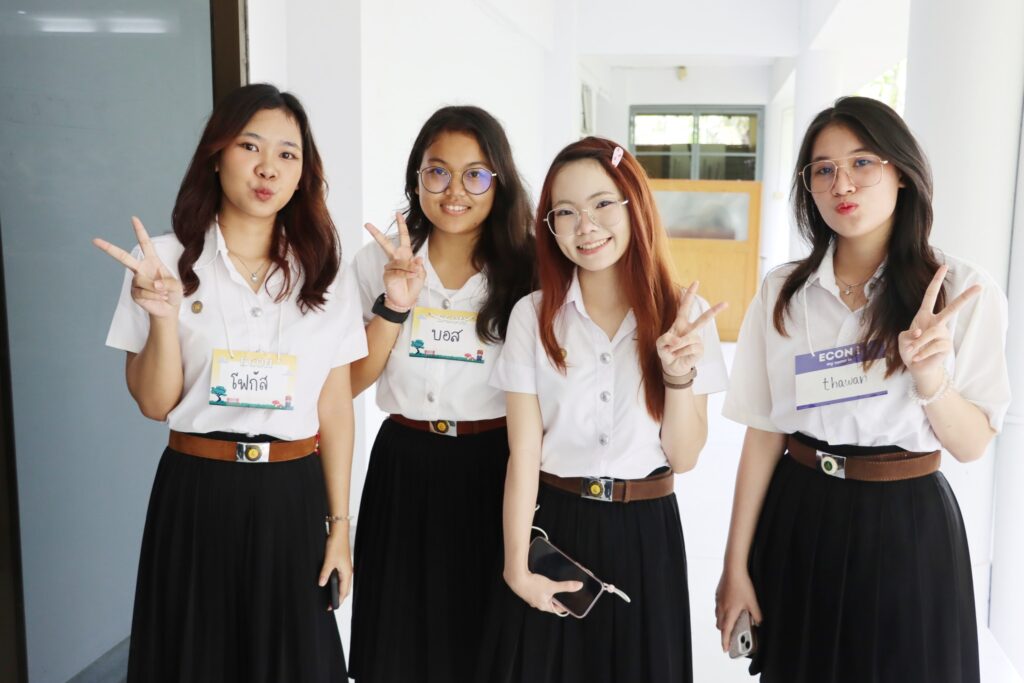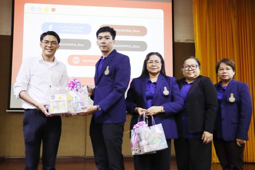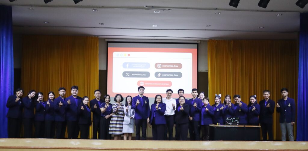 The welcoming ceremony featured a viewing of university and faculty-introducing materials, a lecture introducing the Bachelor of Economics program by Ajarn Siriwan Somnuk, Chair of the Bachelor of Economics program, and advice on university application preparation and life at Burapha University by Ajarn Saksiri Saokomut, Lecturer in the Department of Economics, as well as student representatives from the Bachelor of Economics program.