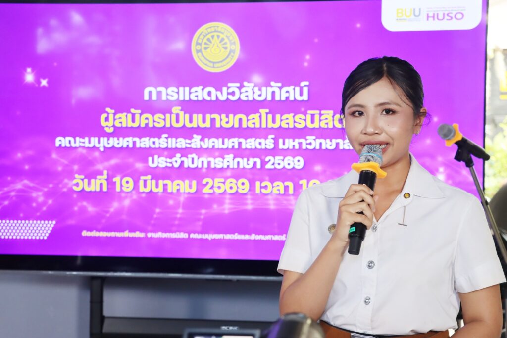 On March 19, 2026, the Faculty of Humanities and Social Sciences at Burapha University hosted a presentation featuring the candidates for Student Club President for the 2026 academic year. This event provided an opportunity for students to hear the ideas, policies, and plans for student activities from the two candidates: