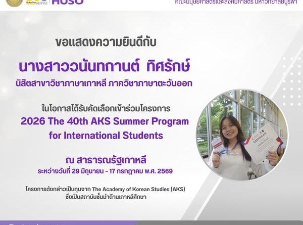 Read MoreMs. Nanthakan Thissarak, a Korean Language student from Burapha University’s Department of Eastern Languages, Faculty of Humanities and Social Sciences,