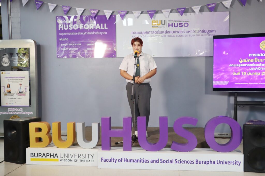 วันที่ 19 มีนาคม 2569 คณะมนุษยศาสตร์และสังคมศาสตร์ มหาวิทยาลัยบูรพา ได้จัดกิจกรรม การแสดงวิสัยทัศน์ของผู้สมัครนายกสโมสรนิสิต ประจำปีการศึกษา 2569 เพื่อเปิดโอกาสให้นิสิตได้รับฟังแนวคิด นโยบาย และทิศทางการพัฒนากิจกรรมนิสิตจากผู้สมัครทั้ง 2 หมายเลข ได้แก่